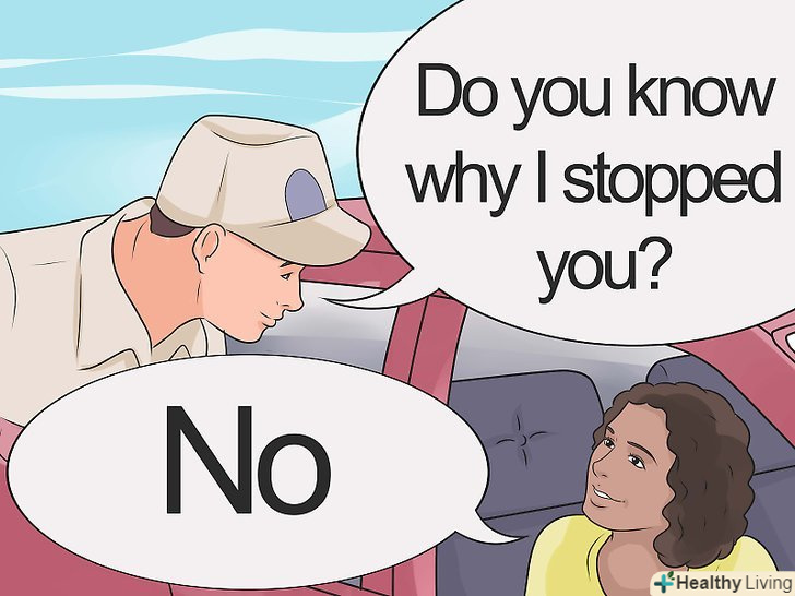 Відповідайте чітко і коротко.Будьте ввічливі і звертайтеся до поліцейського словом»офіцер". Ви можете дізнатися ім'я поліцейського. Занадто відверті відповіді можуть завдати вам шкоди. Офіцер може спробувати отримати ваші визнання, які можуть бути використані проти вас в суді. Він або вона можуть занести будь-які ваші відповіді в рапорт. Крім того, особисті камери спостереження стають стандартом для поліцейських, так що ваше спілкування може бути записано. Ось кілька прикладів того, як слід відповідати на питання:- Якщо вас запитують «" Ви знаєте, чому вас зупинили?"Відповідайте" ні "