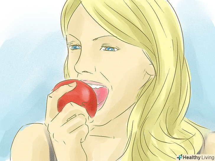 Спробуйте яблуко на смак. остаточна перевірка на зрілість — це проба на смак. М'якоть яблука повинна бути солодкою або терпкою в залежності від сорту, а також м'якше, ніж у незрілого плоду, але не дуже м'якою.- Не лякайтеся, якщо за зовнішніми ознаками пора збирати урожай, але на смак вони недостатньо солодкі (особливо це стосується сортів Делішес). Деякі сорти яблук стають солодкими лише через деякий час зберігання.