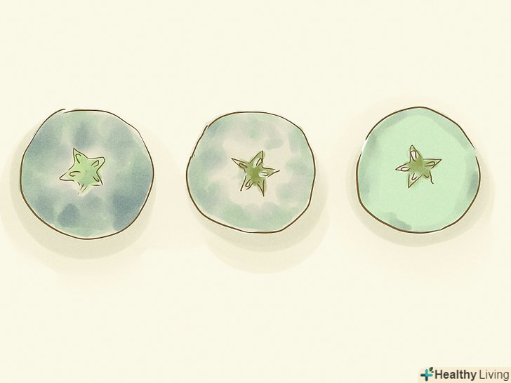 Розпиліть йод на серцевину. якщо інші способи не допомагають, то садівники розрізають яблуко навпіл і бризкають йодом. Під впливом йоду незрілі клітини потемніють через присутність крохмалю. Яблука, яким належить зберігання, повинні мати повністю білу серцевину і темні плями, які займають три чверті або половину фрукта. Повністю світлі яблука потрібно відразу з'їсти або передбачити особливі умови зберігання. [2]