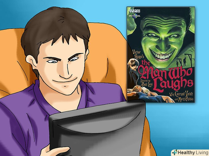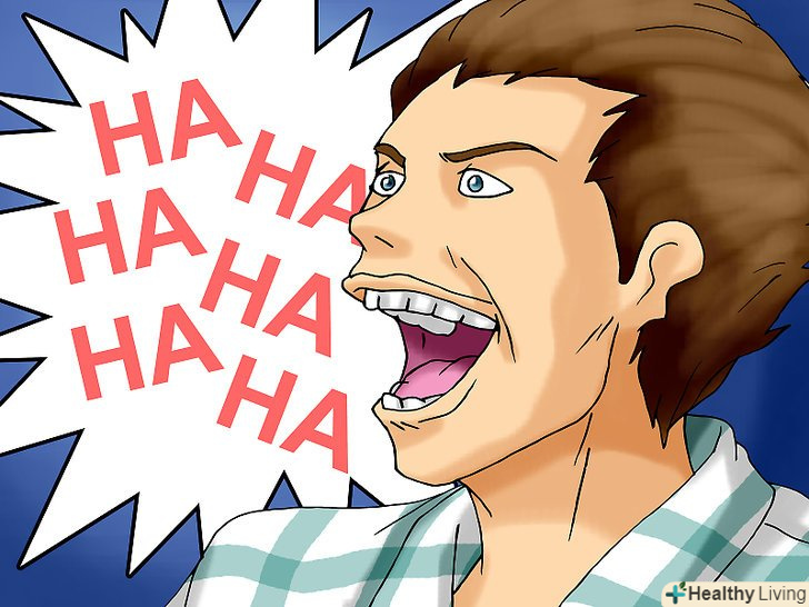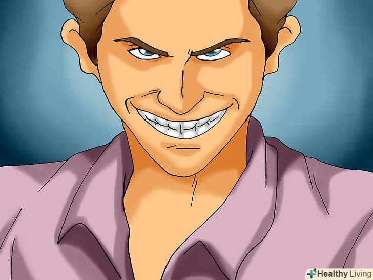 Тренуйтеся загрозливо посміхатися. якщо ви граєте класичного лиходія, посмішка і сміх є обов'язковими атрибутами. Потренуйте посмішку в дзеркалі і визначте, що більше підійде вашому персонажу: посміхатися, показуючи зуби або не відкриваючи рота.[15]- Посмішка лиходія показує, що він задоволений злом, яке здійснює, і від цього по спині глядача можуть пробігти мурашки.