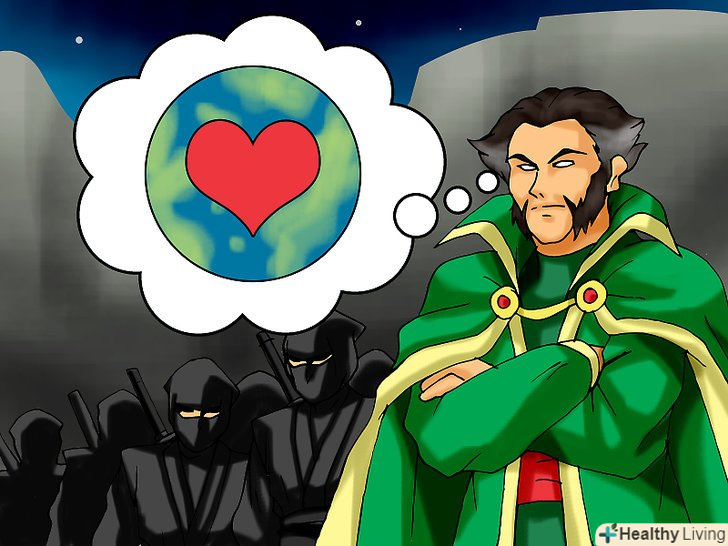 Знайдіть його позитивні якості.навіть у найкращих і найтемніших лиходіїв є недоліки і гуманні аспекти в житті. Переймаючи мислення свого героя, з'ясуйте, що є для нього найважливішим, щоб надати йому більше емоційної глибини, а не представляти його лише як повне зникнення пекла.[5]- Подумайте, чи є у лиходія сім'я, яку потрібно захистити, або, може, він намагається врятувати світ своїм руйнівним способом. Змусьте аудиторію співпереживати його вибору.