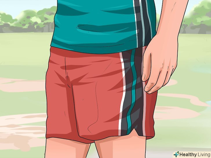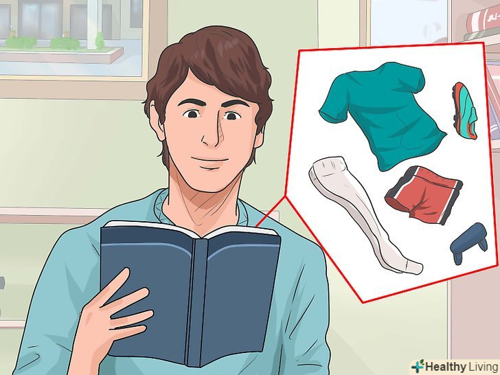 Підберіть відповідний одяг. якщо зовні тепло, тоді вам, ймовірно, варто вибрати шорти і майку або ігрову футболку. Якщо холодно, то ви можете взяти тренувальні штани і майку з довгим рукавом. Вам, можливо, буде потрібно вставити щитки, а може і ні. Якщо ви це робите, тоді надягайте короткі шкарпетки під щитки і довгі гетри зверху, щоб утримувати їх на місці.- Додайте шар одягу при необхідності. Якщо спочатку холодно, не забудьте надіти шорти під ваші тренувальні штани, так, ви зможете зняти їх, коли стане занадто жарко. Ви також можете надіти майку під кофту з довгими рукавами або толстовку з тією ж метою.