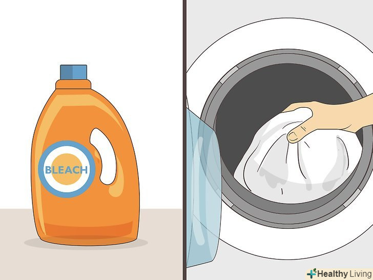 З білої тканини пляма можна вивести за допомогою відбілювача. якщо ви забруднили перманентним маркером білу тканину — одяг, постільну білизну або скатертину — вивести сліди від маркера допоможе прання з відбілювачем. Якщо тканину можна прати в пральній машині і вибілювати, додайте відбілювач до прання і виперіть річ в гарячій воді. Якщо тканину можна відбілювати, але не можна прати в машині, замочіть її в відбілювачі на 10 хвилин, а потім прополощіть в холодній воді, щоб видалити пляму.- Обов'язково перевірте етикету на одязі, щоб переконатися, що її можна вибілювати. Навіть якщо тканина білого кольору, іноді використовувати відбілювач не можна.