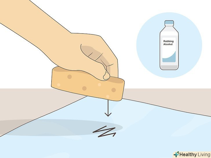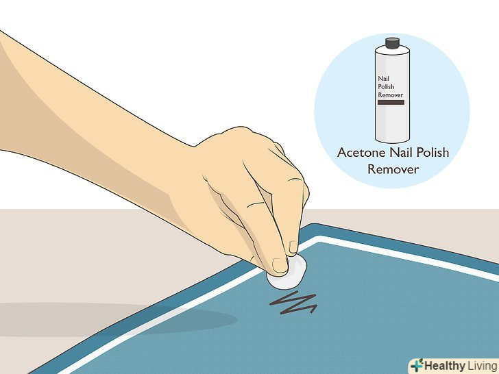 З більш грубих тканин пляма можна видалити засобом для зняття лаку з ацетоном. намочіть чисту губку або ватку засобом для зняття лаку, що містить ацетон. Губка або ватка повинні бути вологими, але не мокрими. Промакайте пляму, періодично змочуючи губку або ватку ацетоном, поки пляма не зникне. [5]- До складу більшості засобів для зняття лаку входять одночасно ацетон і спирт. Обидва ці речовини допомагають розчинити сліди перманентного маркера і видалити їх з тканини.