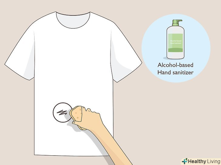Видалити перманентний маркер з одягу можна спиртовмісних засобом для дезінфекції рук. видавіть невелику порцію гелю для рук на пляму. Кількість гелю буде залежати від розмірів плями. Чистою губкою акуратно розмажте гель по плямі круговими рухами і почекайте 15 хвилин. Якщо пляма не вдалося вивести повністю, повторюйте процедуру до тих пір, поки пляма не зникне. [6]- Оскільки дезінфікуючий засіб розроблений для шкіри рук, воно має більш м'яким дією, ніж інші спиртовмісні Склади, і підходить для тонких і делікатних тканин. [7]
