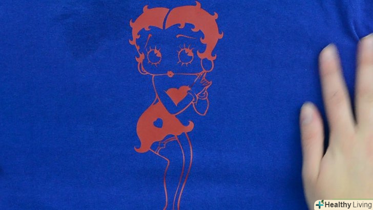 Покладіть річ у сушильну машину. Увімкніть програму з високою температурою на кілька хвилин – це нагріє наклейку і зробить її більш рухомий.- Виверніть річ навиворіт. Наклейка повинна опинитися всередині. Знайдіть місце з наклейкою і покладіть річ так, щоб внутрішня частина сорочки з наклейкою дивилася вгору (наклейка буде перед вами, але з вивороту). [3]