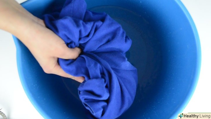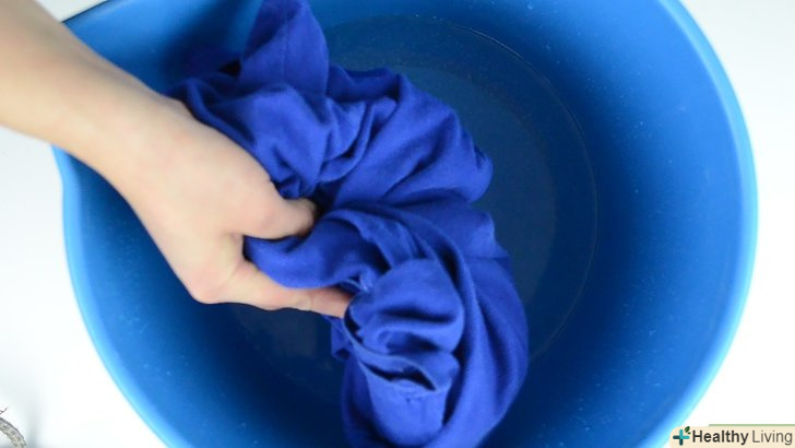 Виперіть річ окремо від іншого одягу. виперіть її руками або в пральній машині. Якщо прати річ з іншим одягом, розчинник може пошкодити тканину інших речей. Використовуйте більше прального порошку, ніж зазвичай, щоб повністю вимити розчинник з тканини і не дати йому стикнутися зі шкірою. [6]