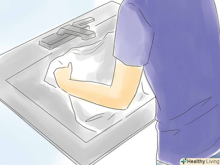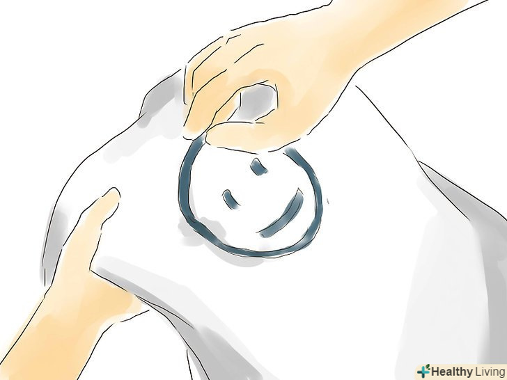 Виверніть одяг на лицьову сторону. накрийте наклейку шматком тканини.