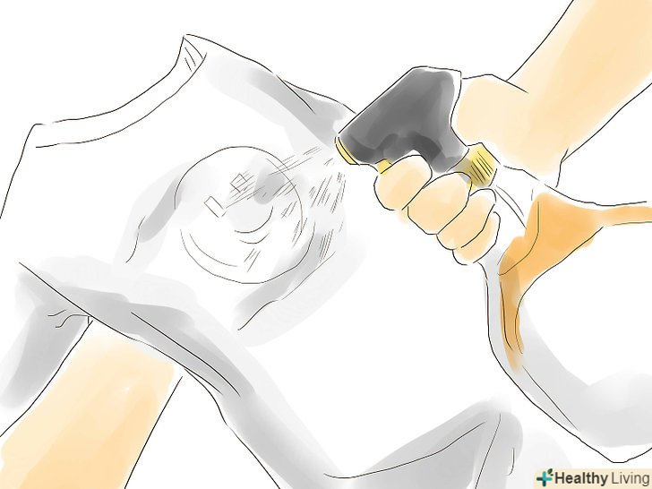 Рясно розпиліть цитрусовий засіб для видалення на внутрішню сторону одягу. переконайтеся, що ви покрили всю площу, на якій поміщається знак. Зачекайте одну хвилину для того, щоб воно вбралося.