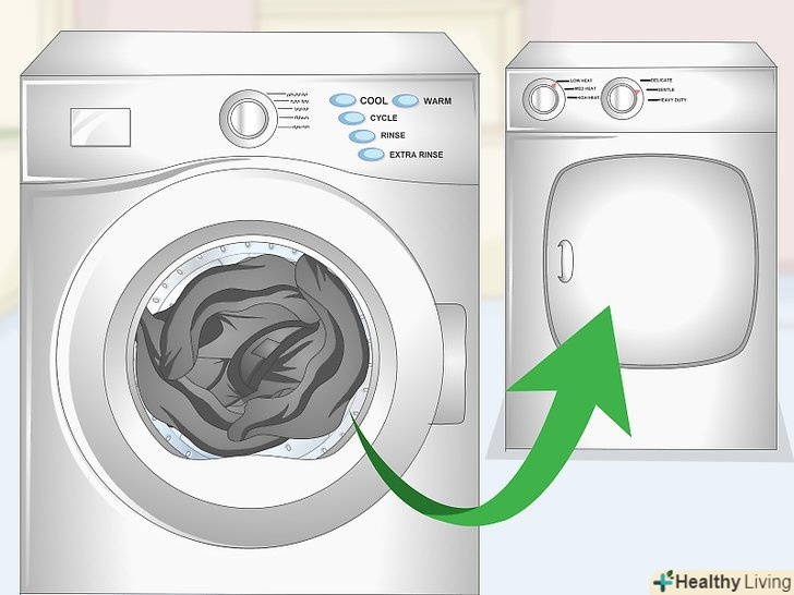 Виперіть виріб в пральній машинці і висушіть його в сушарці окремо від інших речей. виперіть і висушіть тканину окремо від інших речей, щоб залишки фарби випадково не потрапили на інші предмети. Після першого циклу прання предмет можна буде прати разом з іншими речами. [12]- Якщо ви переживаєте, що тканина в сушарці може сісти, вивісите її на сонці.