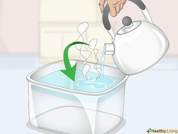 Наповніть велику ємність окропом. для цього згодиться велика миска або відро. Ємність повинна бути досить великою, щоб вмістити фарбується предмет. Наповніть ємність водою, щоб занурити в неї тканину. Найкраще використовувати окріп, але підійде і гаряча вода з-під крана. [2]- Якщо у вас є плита і велика каструля, приготуйте фарбувальну ванну, поставивши каструлю на повільний вогонь. Якщо вода буде залишатися гарячою протягом усього процесу, то одяг забарвиться в більш темний колір. [3]
