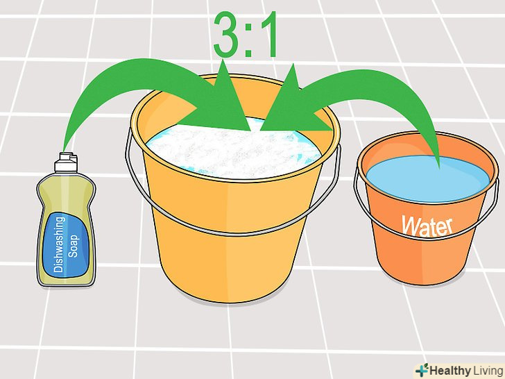 Приготуйте Водний розчин засобу для миття посуду. якщо вам не вдалося повністю вивести пляму за допомогою лаку для волосся і спирту, спробуйте вимочити шовкове плаття в водному розчині засобу для миття посуду. Візьміть досить великий таз або відро і змішайте в ньому розчин для миття посуду і воду в пропорції 3:1. [10]- Використовуйте прозорий, а не кольоровий засіб для миття посуду.