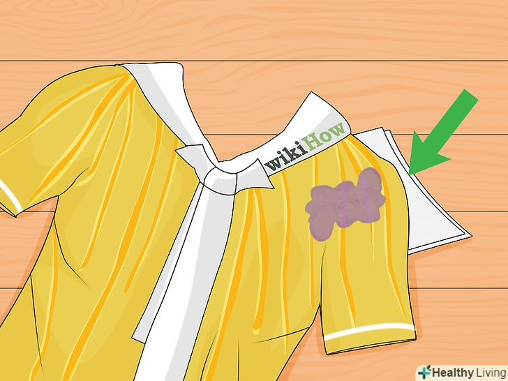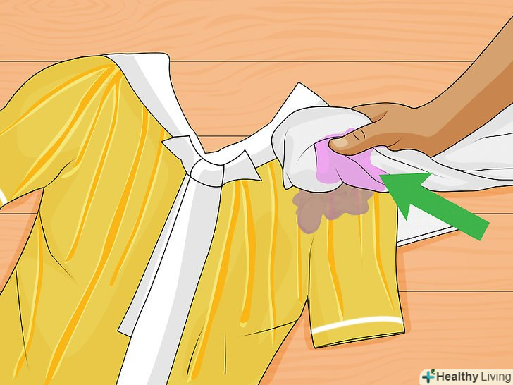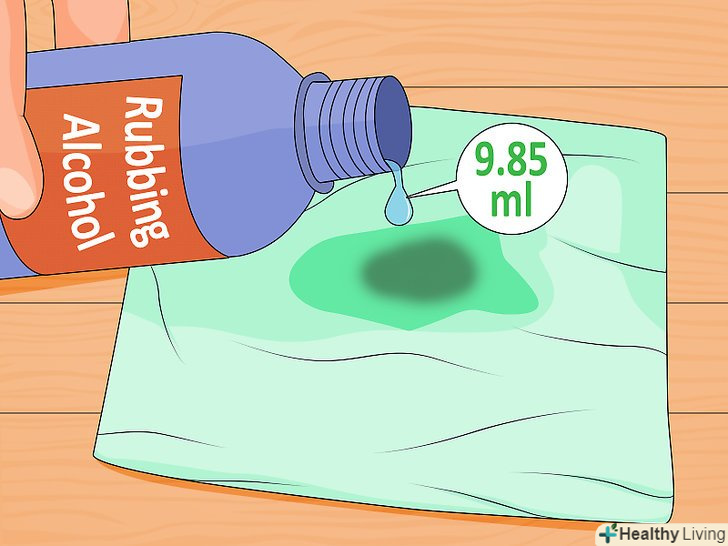 Нанесіть спирт на чисту ганчірку. після того як ви розкладіть плаття, нанесіть приблизно 2 чайні ложки (10 мілілітрів) медичного або ізопропілового спирту на чисту ганчірку. Використовуйте прозорий спирт без барвників, так як вони можуть змінити колір тканини. [6]
