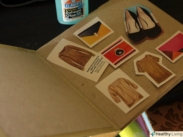 Почніть вирізати! виріжте картинки з журналів – вподобану вам Одяг, аксесуари, Взуття. Якщо вам подобаються образи знаменитостей, можете їх також вирізати. Після закінчення, переходите до наступного кроку.