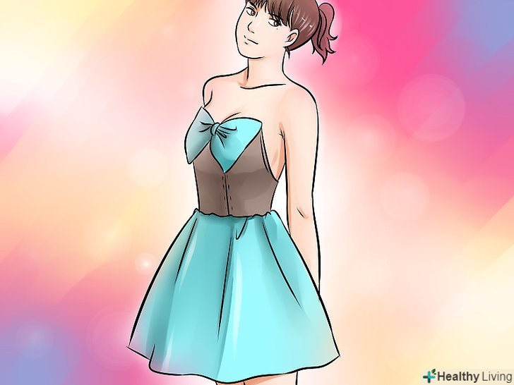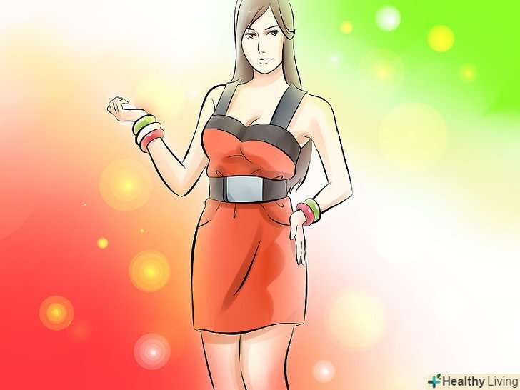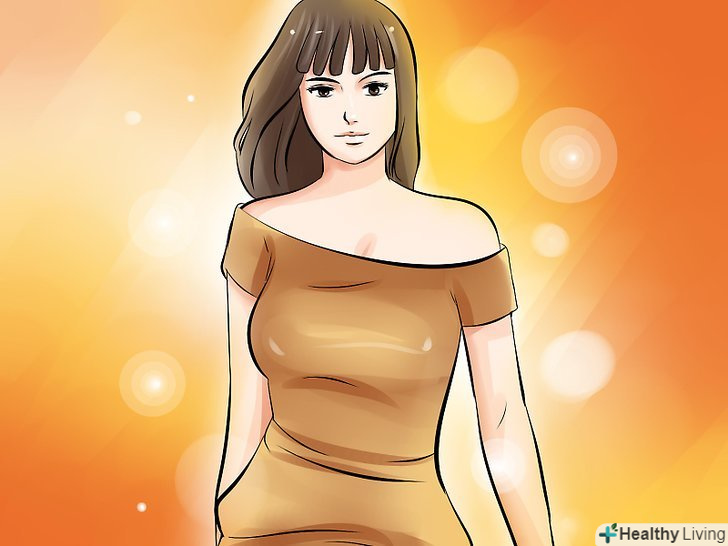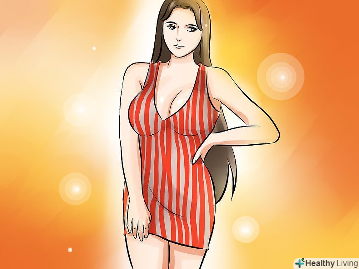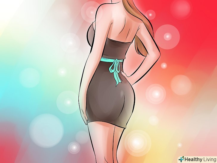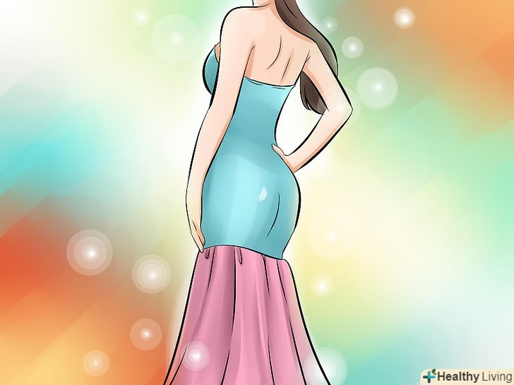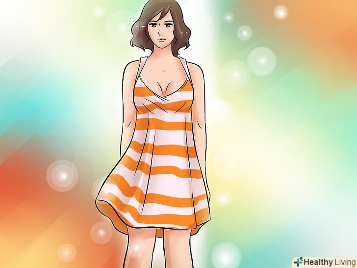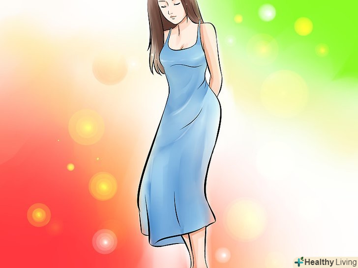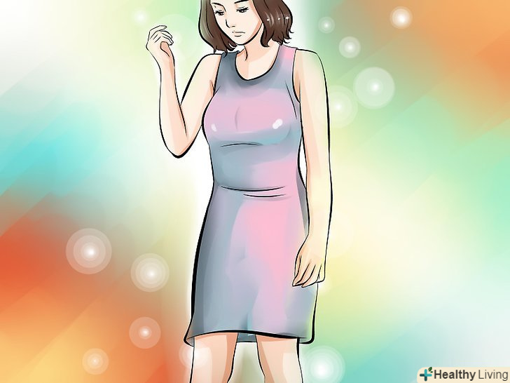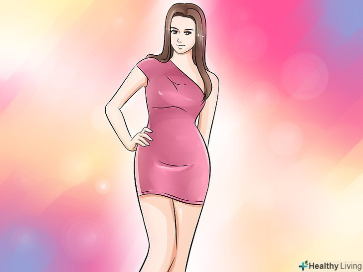 Шукайте облягаючі сукні з діагональним або зміщеним вирізом, щоб показати ваші ноги і додати трохи інтересу вашому образу. переконайтеся, що ви вибрали сукню, яка охоплює талію, стегна і спадає вільно вниз.