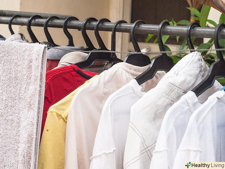 Розвісьте одяг, щоб вона висохла. деякі вважають за краще не користуватися сушильною машиною і вивішують одяг на спеціальних решітках або білизняних мотузках. Після сушіння на відкритому повітрі одяг набуває приємний запах свіжості і чистоти. [7] якщо ви сушите одяг на свіжому повітрі, врахуйте, що деякі тканини можуть вицвісти на сонці. Якщо ж ви вивішуєте одяг в приміщенні, воно повинно добре провітрюватися-наприклад, можна сушити одяг біля відкритих вікон.- Вивішуйте білий одяг на сонці. Сонячне світло відбілить тканину, а свіже повітря додасть одягу приємний запах чистоти.