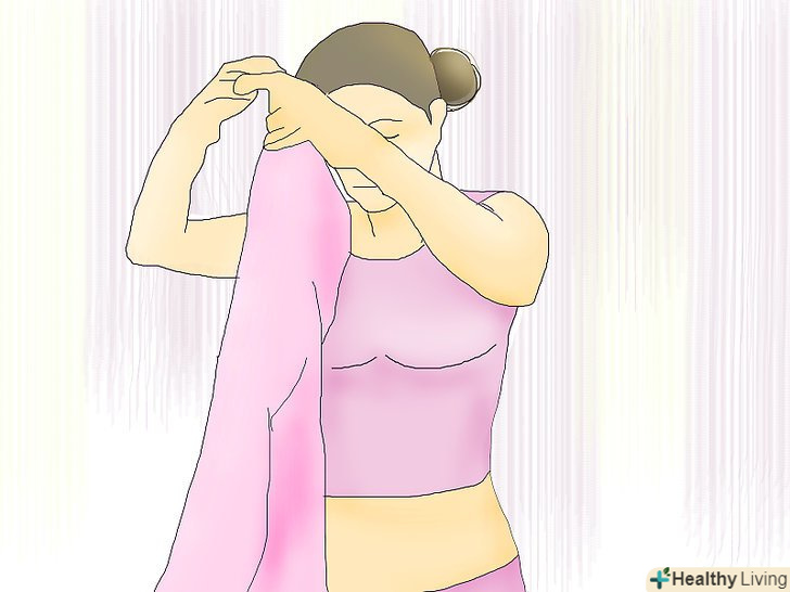 Загорніть решту тканини навколо себе зліва направо і через плече.