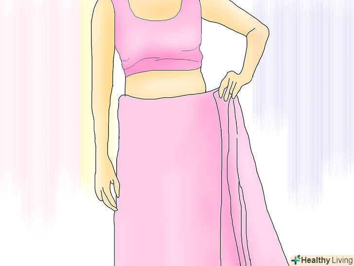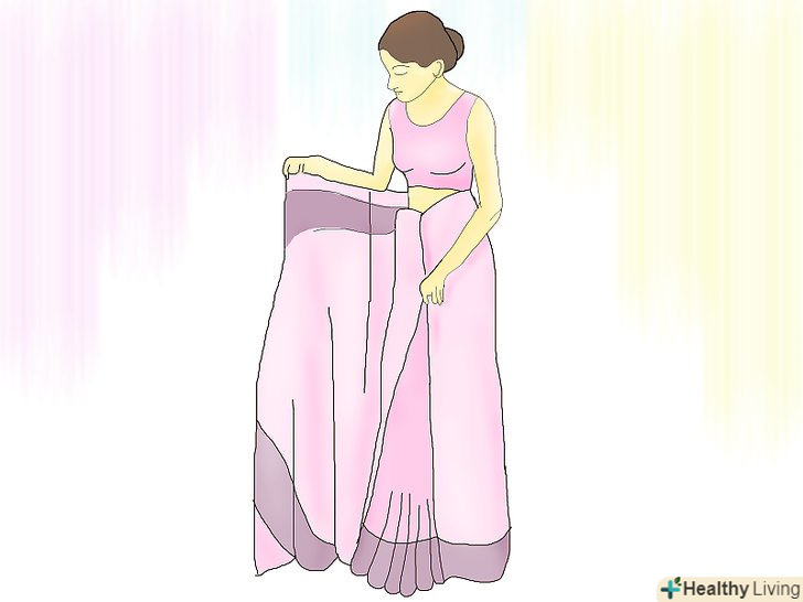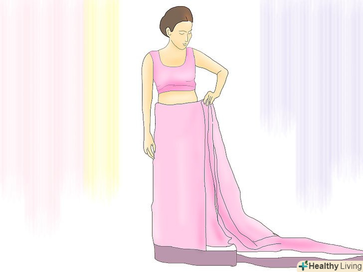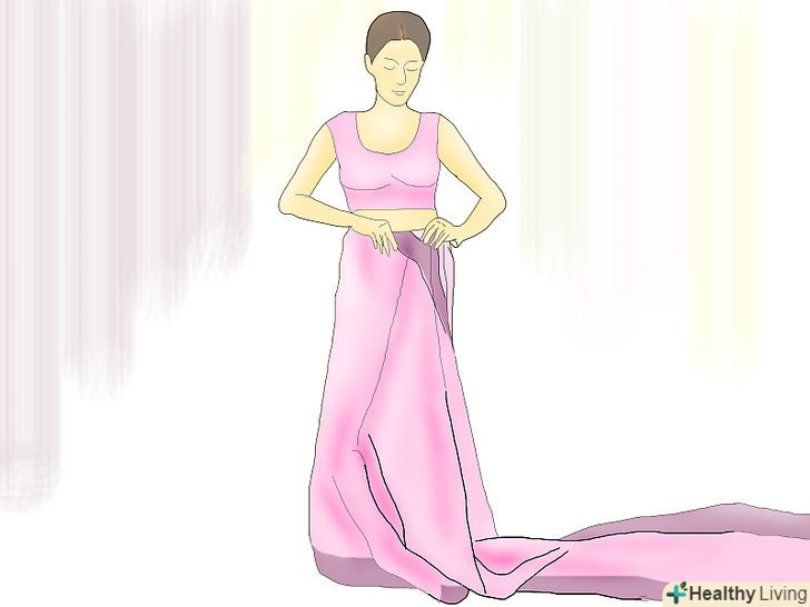 Оберніть сарі навколо вашої талії і закріпіть його. Паллу (прикрашена сторона) повинна бути зовні.
