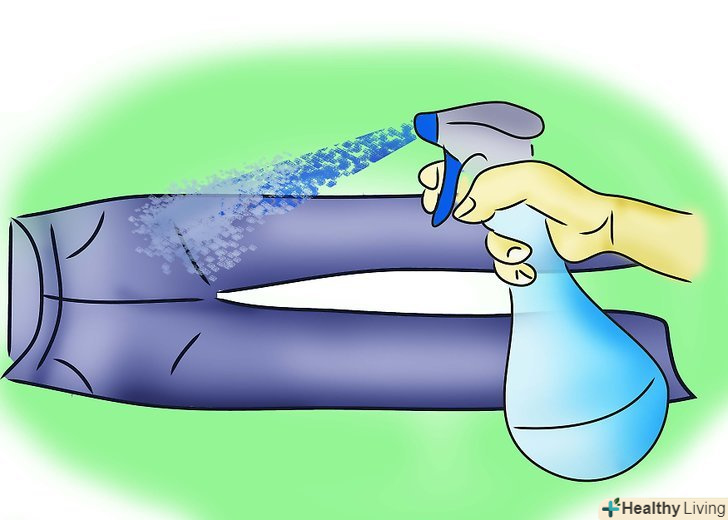 Розпиліть розчин відбілювача на джинси, кількість залежить від ваших побажань. розпилюйте на ті місця, які ви хочете відбілити.