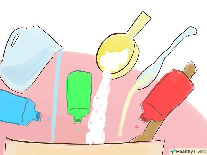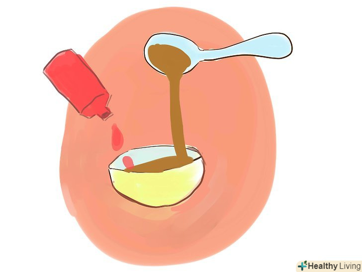 Приготуйте штучну кров. рідина, яку ви будете використовувати для цього способу схожа на ту, що описана в другому способі, проте не слід додавати рідке мило, так як дану суміш ви будете вводити в ніс.- У маленькій мисці змішайте 250мл світлого кукурудзяного сиропу, 15 мл води, 30 мл червоного харчового барвника, 2-3 краплі синього або зеленого харчового барвника і 30 мл кукурудзяного крохмалю. Перемішуйте до повного розчинення крохмалю. [3]