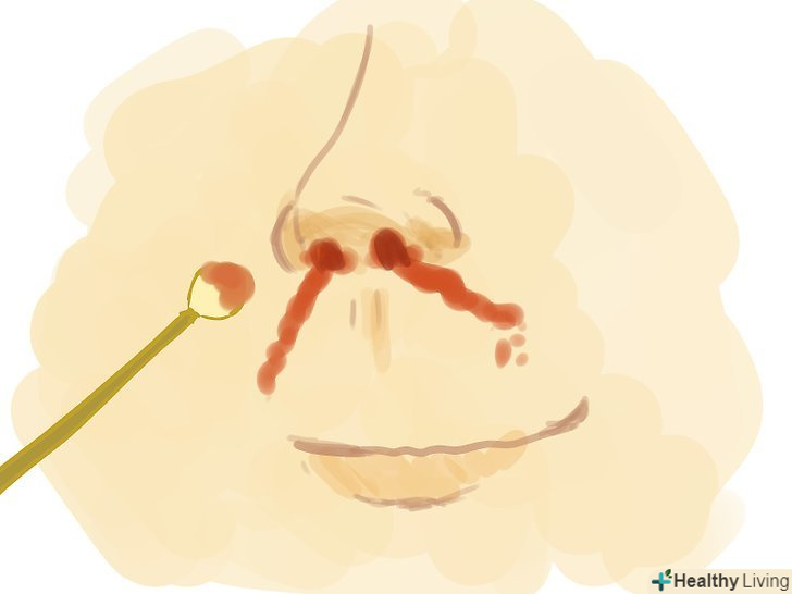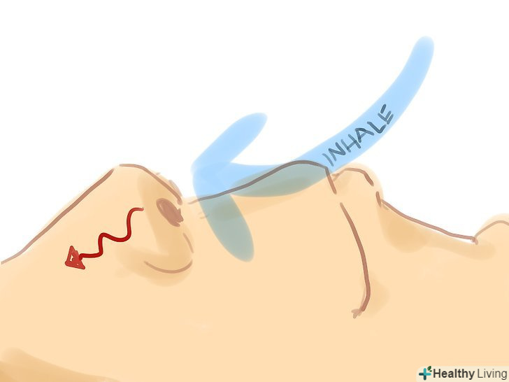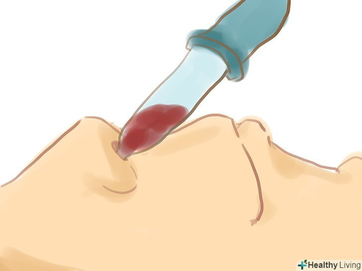 Відкиньте голову назад і введіть "кров". Встаньте перед дзеркалом, відкиньте голову назад. Не відкидайте її занадто сильно, але достатньо того, щоб ви могли бачити в дзеркалі свої ніздрі. Покладіть піпетку в ніздрю і повільно введіть суміш в ніс.- Даний пункт слід виконати одночасно з наступним.