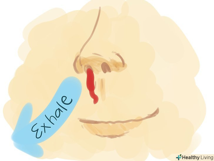 Видихніть через ніс. якщо настав момент імітування кровотечі з носа, перестаньте дихати через ніс. Таким чином," кров " сама повільно витече з носа, створюючи реалістичний образ.- Не видихайте занадто сильно і різко, так вся "кров" вийде з носа занадто швидко.
