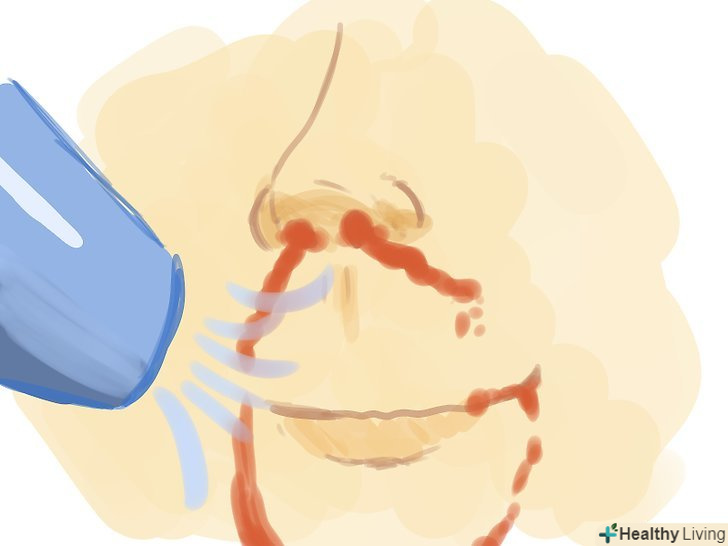 Нанесіть "кров" на ніздрі і навколо крил носа. [2] Мокніть косметичну губку в штучну кров. Нанесіть кров на область між носом і ротом. Створіть ефект ніби кров тече з ніздрів. Нанесіть "кров" на нижню частину носа, під ніздрі.- Замість губки можна використовувати невелику пензлик.
