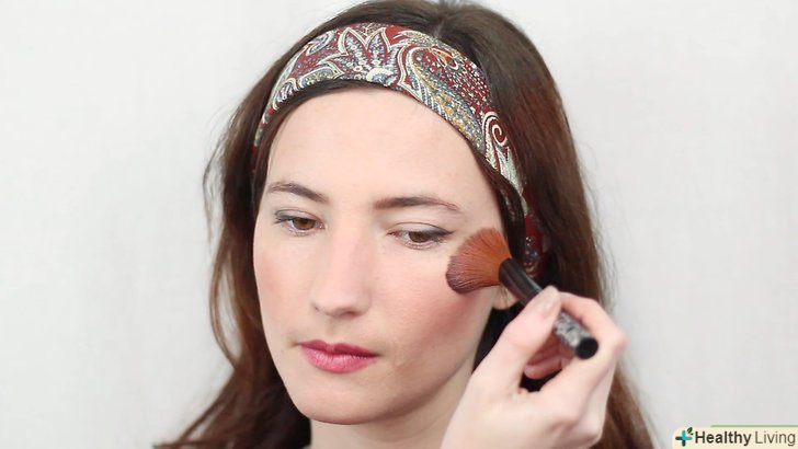 - Додайте рум'ян. через шар тонального крему і консилера особа може здаватися плоским. Щоб виправити це, нанесіть на щоки рум'яна. Виберіть відтінок, який підійде тону вашої шкіри. [18]