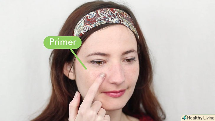 Нанесіть на шкіру праймер. використовувати праймер кожен день не обов'язково, але якщо вам потрібно, щоб макіяж протримався довго і веснянок не було видно, не пропускайте цей етап. Праймер також може заповнити пори і дрібні зморшки, і макіяж ляже рівніше. [14] нанесіть праймер пальцями і розподіліть його по шкірі рівномірно. [15]- Як і при виборі зволожуючого крему, купуючи праймер, потрібно враховувати тип шкіри. Жирній шкірі підійде основа під макіяж без масла — це зменшить жирний блиск. Сухій шкірі потрібен праймер з зволожуючим компонентом, який допоможе зробити шкіру сяючою.
