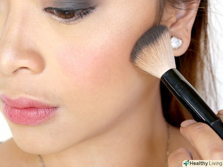 Знайте скільки рум'ян застосовувати. більшість людей бояться переборщити з рум'янами, тому вони, як правило, застосовують їх, занадто мало.- Тим не менш, вам потрібно, щоб ваші рум'яна були трохи помітні-вони не повинні просто зливатися з вашою шкірою, як основа.