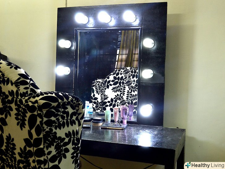 Виберіть добре освітлене місце. важливо наносити рум'яна в добре освяченому місці, інакше ви можете недооцінити, скільки рум'ян ви наклали. Найкраще світло-це природне світло, однак добре освітлена ванна або освітлене дзеркало для макіяжу також добре підійдуть.