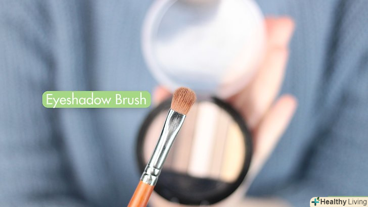 Використовуйте кисть для тіней. візьміть тонку круглу кисть — з нею буде простіше працювати. Широкими кистями зручно наносити тіні на велику ділянку (наприклад, на всю повіку). Найбільше для розсипчастих тіней підходять кисті з округленим ворсом. [11] підійде також і аплікатор у вигляді спонжа, але розтушувати тіні спонжем складніше. [12]- Наберіть на кисть більш світлий відтінок тіней. не набирайте занадто багато, інакше тіні почнуть обсипатися. Пам'ятайте, що додати ще тіней можна завжди, а ось прибрати зайве, не пошкодивши макіяж, складніше.