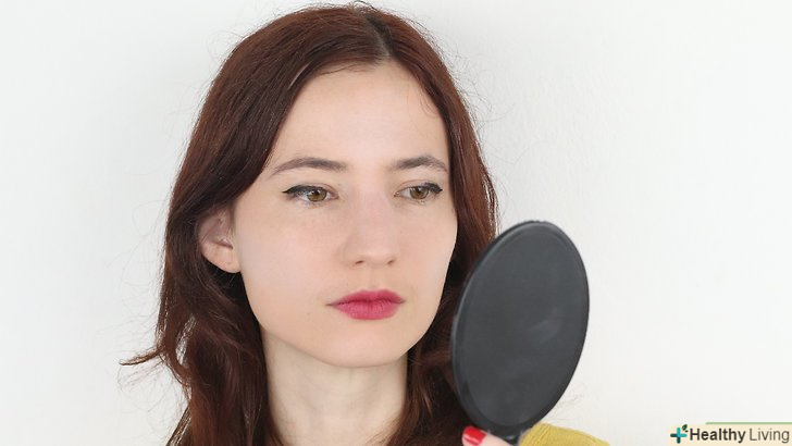 - При необхідності, використовуйте ілюмінайзер для фінальних штрихів. подивіться в дзеркало на своє обличчя під різними кутами. Якщо вам здається, що на деякі області потрібно було нанести більше хайлайтера, нанесіть на них ілюмінайзер. Наприклад, можете нанести трохи засобу на перенісся або вилиці. [15]