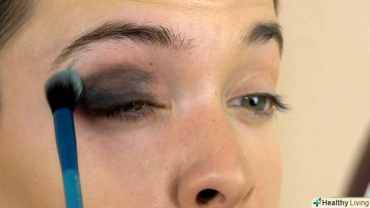 - Розтушуйте тіні. очистіть пензлик із закругленими кінцями антибактеріальною серветкою або мильною водою і висушіть рушником. Необхідно, щоб темний контур не зник, тому пензликом лише пом'якшите його. Не потрібно занадто розтушовувати, інакше повіку повністю покриється темним відтінком.