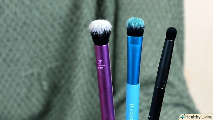 Виберіть правильні Пензлики. так, тіні можна наносити подушечками пальців, проте на них чимало шкірного сала, що ускладнює нанесення тіней. Купіть кілька пензликів різного розміру. [2] краще не використовувати аплікатори для тіней, вони поглинають пігмент кольору.- Візьміть плоску жорстку кисть. Нею найкраще наносити пігмент і поширювати тіні по всій повіці.