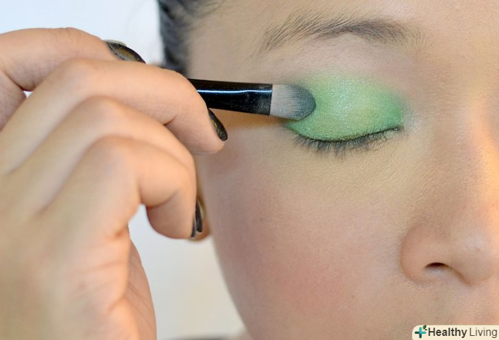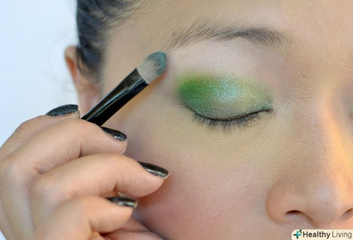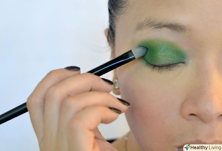 Якщо у вас темно-зелені очі, нанесіть світло-зелені тіні на повіки. нанесіть до 3 шарів, якщо ви хочете, щоб вони виглядали яскраво. Можна додати трохи блискіток, при бажанні.