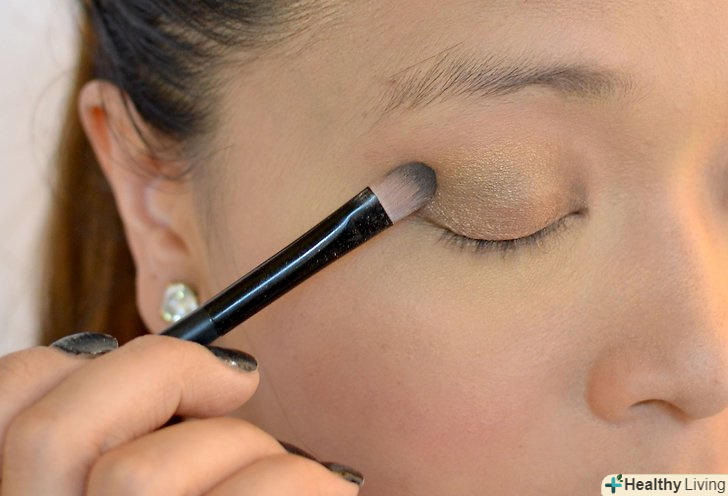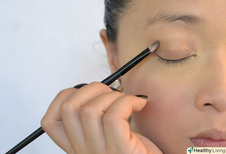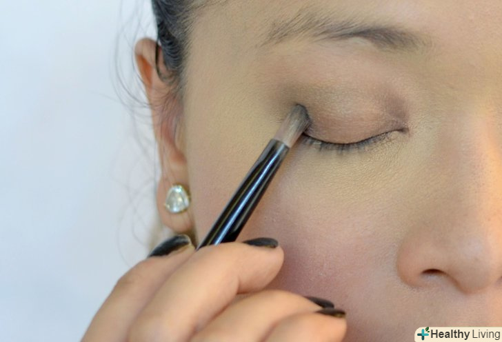 За допомогою пензлика для нанесення тіней нанесіть на всю повіку тіні кольором від середнього до темного засмаги. рівно накладіть один або два шари тіней.