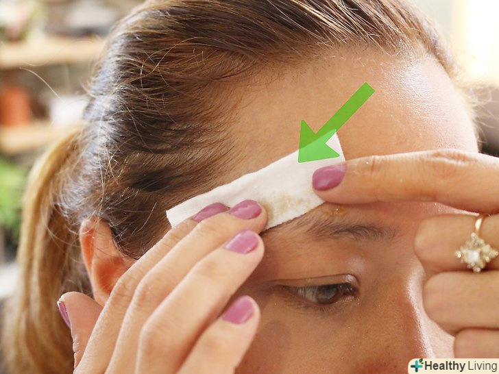Зніміть смужку одним ривком в напрямку проти росту волосся. не тягніть її вгору. Смикайте строго проти росту волосся. Якщо частина волосків залишиться, прикладіть смужку назад і знову сдерніте. У цей момент вам слід зібратися. Якщо ви не звикли до відчуттів, які виникають при вищипуванні брів пінцетом, процедура воскової депіляції може здатися вам кілька болючою. [13]- Щоб зняти почервоніння після депіляції, обробіть брову зволожуючим засобом із заспокійливою дією. Для цього добре підійде гель Алое вера. Зітріть його надлишки через кілька хвилин.