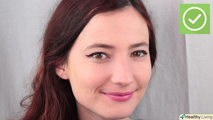 - Візуально збільште очі. нанесіть підводку лише на куточки очей. Почніть від середини верхньої повіки і накресліть лінію до зовнішнього куточка ока. Зробіть її товщі у напрямку до куточка. Аналогічним чином підведіть нижню повіку і з'єднайте лінії в куточку ока. [8]