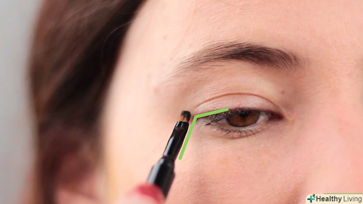 - Злегка нахиліть стрілку у напрямку до скроні. Вона повинна приблизно перебувати на лінії, що з'єднує між собою крило носа і кінчик брови. [10]
