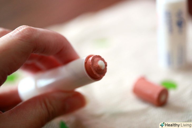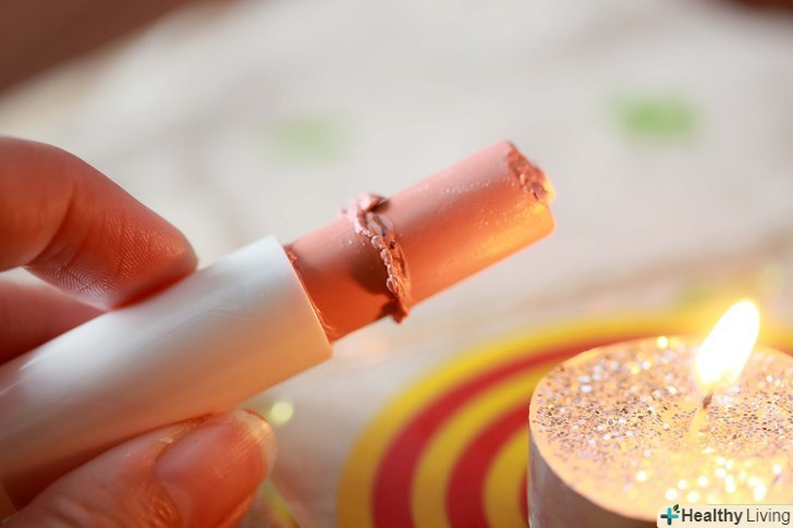 Злегка розтопіть зламані шматочки помади. за допомогою запальнички або сірники акуратно проведіть полум'ям по нижній частині відламаного шматочка, щоб розм'якшити його. Злегка розтопіть залишок помади, що залишився в основі тюбика. Слідкуйте за тим, щоб не спалити помаду або не розплавити тюбик. [1]