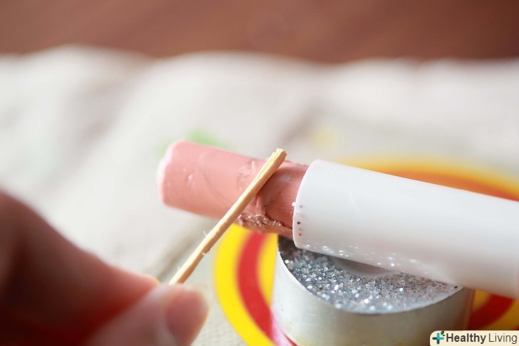 Скріпіть краї. зубочисткою або чистим кінчиком сірника обережно потріть боки помади, скріпивши її в єдине ціле. [2]