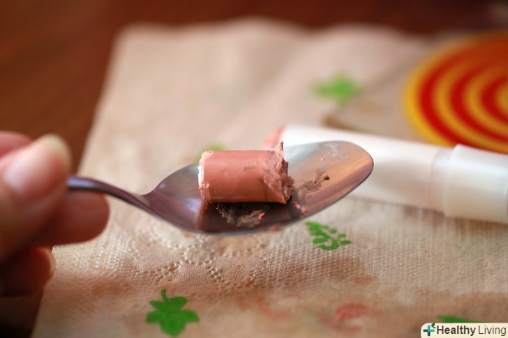 Розтопіть її, щоб прибрати грудочки. щоб нова помада була ідеально гладкою, помістіть її в металеву ложку і потримайте над полум'ям свічки до тих пір, поки вміст не розтане. [4]