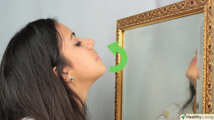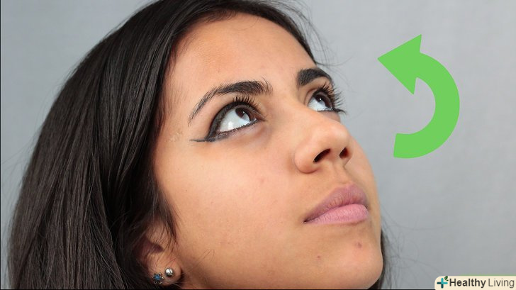 Нахиліть голову назад. після того, як ви закінчите з верхньою лінією вій, злегка нахиліть голову назад, щоб побачити нижню лінію вій.- Для роботи з нижньою лінією вій закривати очей необов'язково. Крім того, вам не потрібно відтягувати вниз нижню повіку, оскільки ви будете промальовувати стрілку на самій лінії росту вій, а не на внутрішній лінії століття.