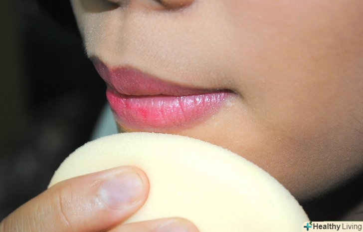 За допомогою пальця або губки для макіяжу акуратно зітріть все зайве з зовнішньої сторони природної лінії губ.
