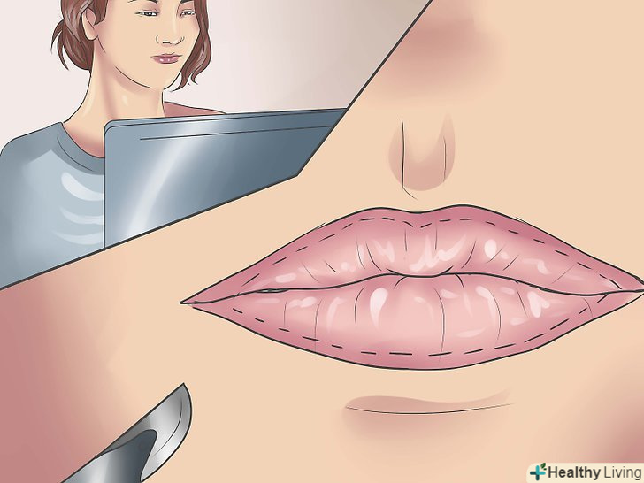 - Поговоріть з пластичним хірургом, сертифікованим Американською Радою з пластичної хірургії. Переконайтеся, що хірург має досвід роботи з операціями губ. Він або вона вивчить ваші губи і оцінить ваші очікування до прийняття рішення про те, чи слід рекомендувати операцію. Ваш хірург також подивиться на будь-які інші умови вашого здоров'я, які можуть зробити хірургію губ більш небезпечною, таких як діабет або вовчак. [10]