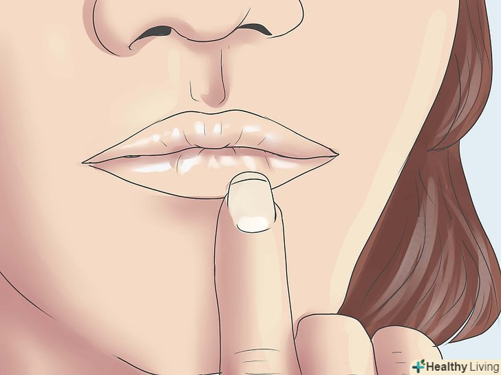 - Закрийте зовнішні куточки рота вашими вказівними пальцями. Обережно потягніть вниз по кутах рота, використовуючи ці пальці.