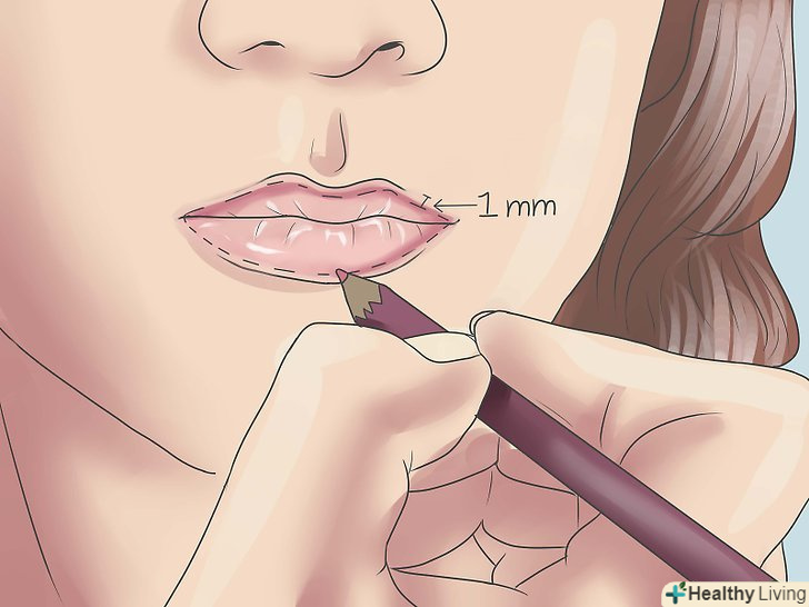 - Ви повинні нанести олівець на губи в 1 мм від природного контуру ваших губ. Знову визначається штучна лінія губ повинен бути тонким, не очевидно.