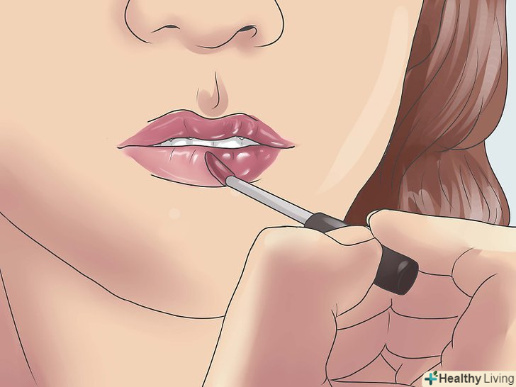 Знайте, як використовувати більш яскраві кольори помади. якщо блідий, нейтральний тон помади просто не буде працювати, ви можете вибрати глибокий, багатий колір і нанести її таким чином, що як і раніше створить ілюзію невеликих губ. Нанесіть багато насиченого кольору тільки в центр ваших губ. Використовуйте кисть для помади, щоб розтушувати колір назовні, до кутів і контуру ваших губ. [6]- Зверніть увагу, що навіть якщо ви вирішите використовувати більш темний колір, ви повинні уникати несмачних або яскравих кольорів. Вони, як правило, привертають більше уваги і зроблять ваші губи візуально ще більше.