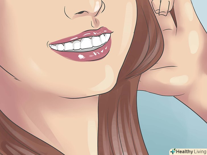 - Ви також можете спробувати підняти нижню губу над верхньою губою і посміхатися широкою посмішкою, не дозволяючи вашій нижній губі спуститися з верхньої. Повторіть вправу десять разів на день.